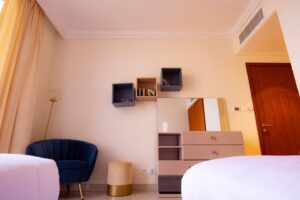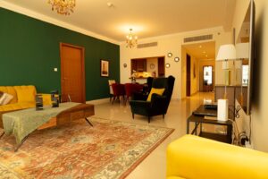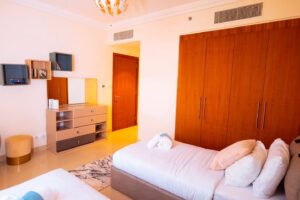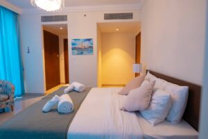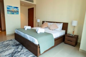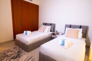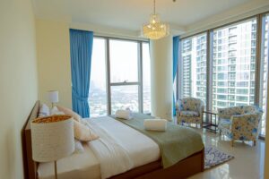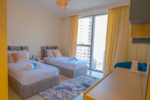 This 2 Bedroom + Kids Room apartment with beautiful view of the city. Perfect for families and Perfect for families and professionals seeking convenience with the luxuries of high living, you can indulge in modern city living with close proximity to restaurants, bars and the bustling city of Dubai.